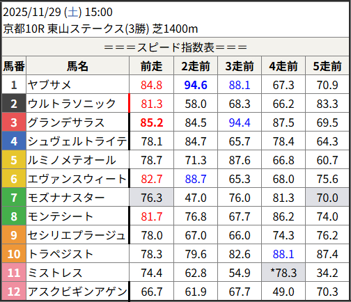 <スピード指数表について>