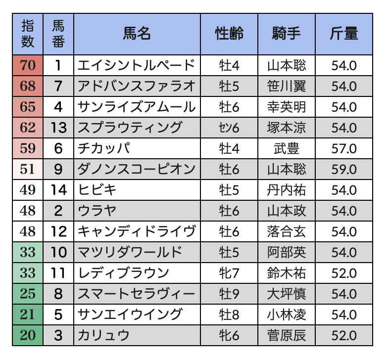 シンプルにカペラS4着という実績を持ちながら54kgでの出走はあまりに恵まれている。