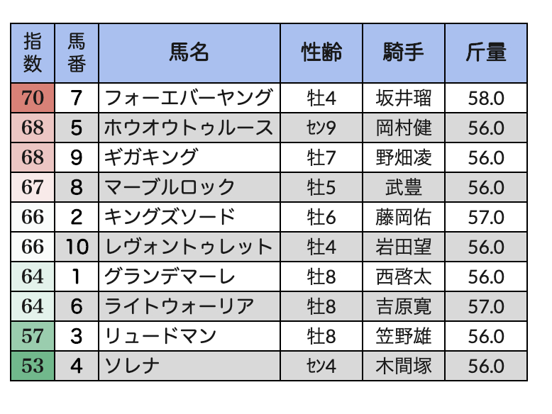 フォーエバーヤングには勝てないかもしれないが、他の馬には先着できる可能性は高いとみる。