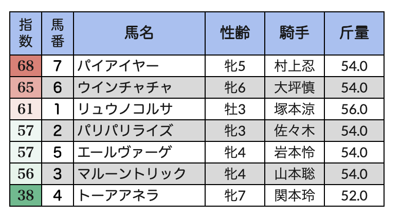 ◆指数【上位】の【穴馬】