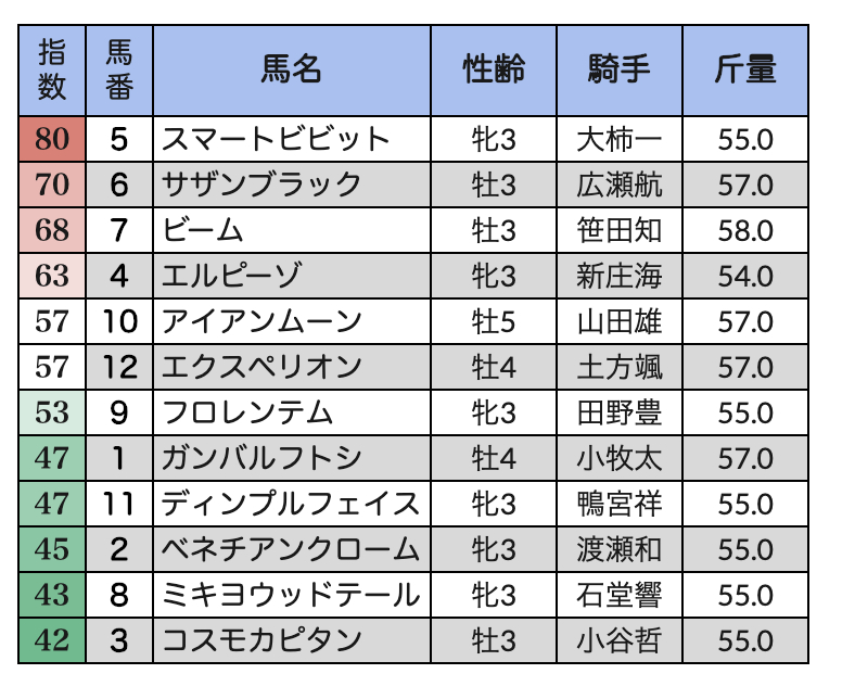 ◆指数【上位】の【人気馬】