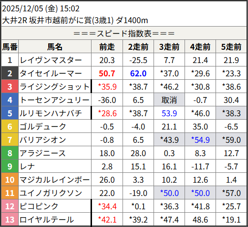 ・走破タイムを元に、斤量・ペースにて補正をかけた指数