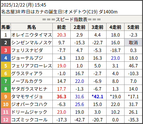 | 9 | 12 | コズミックコール | 11人気(124.3倍) | |